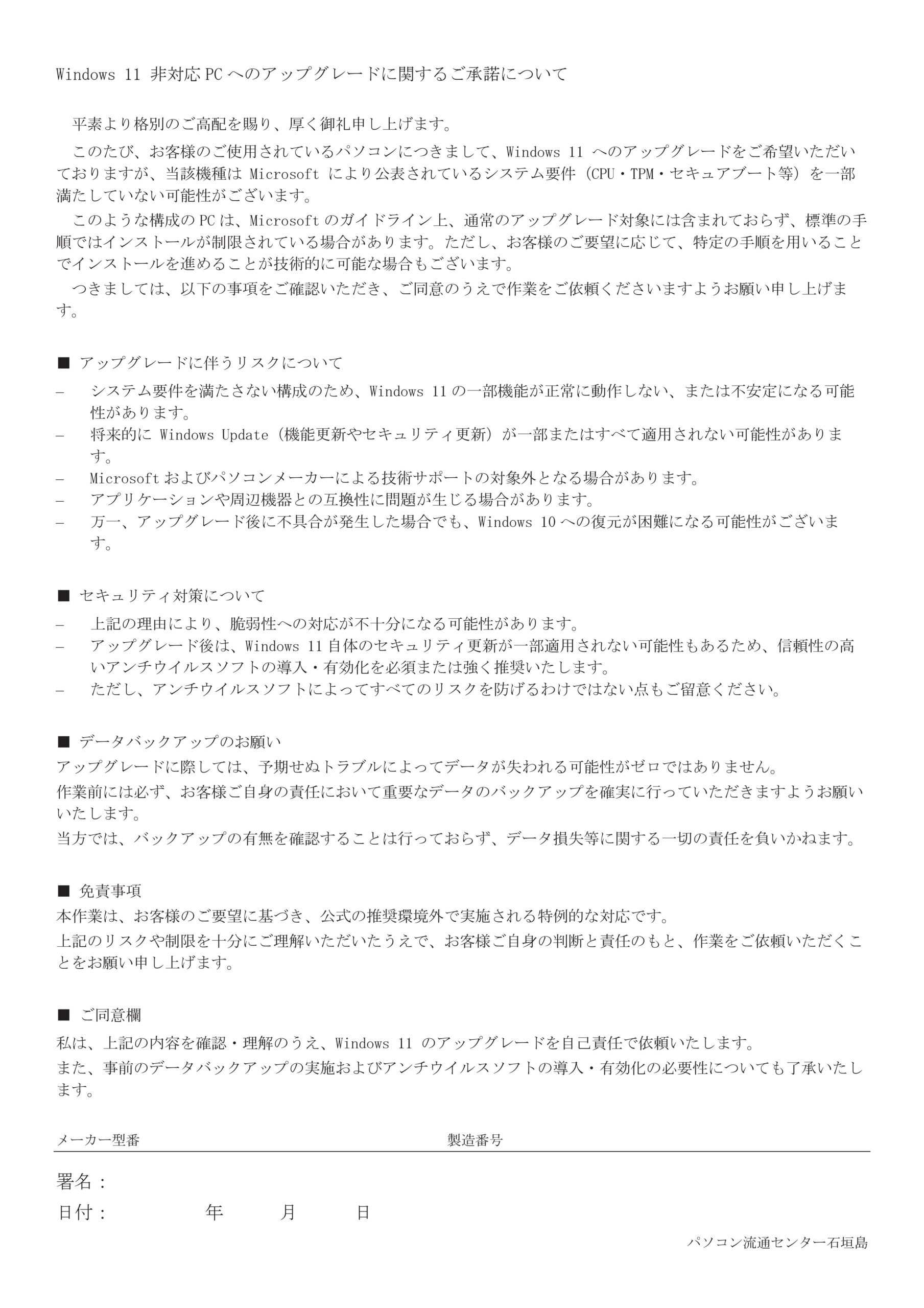 この承諾書にサインを頂いてからの作業となります。